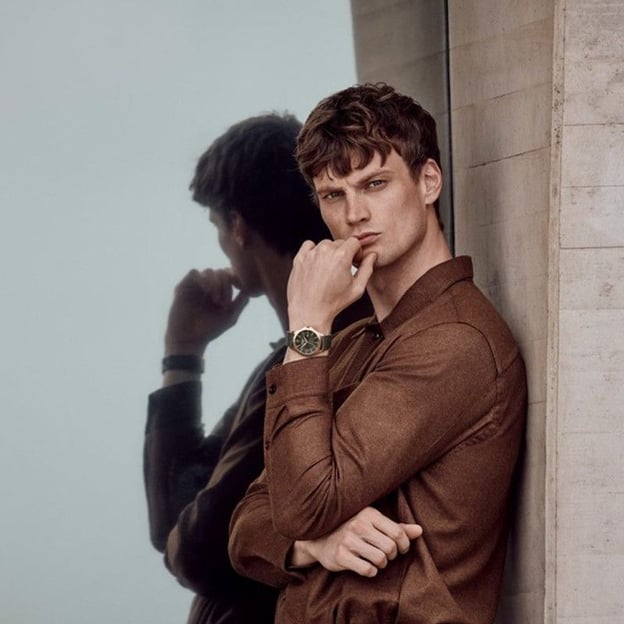 Круглый корпус из нержавеющей стали выполнен в оттенке розового золота и сочетается с серым кожаным ремешком. Сапфировое стекло с антибликовым покрытием помогает сохранять хорошую видимость при разном освещении и лучше защищено от царапин. Водозащита 10 ATM (100 м) делает модель уверенным выбором для активного дня, а диаметр 40 мм остается универсальным на запястье.