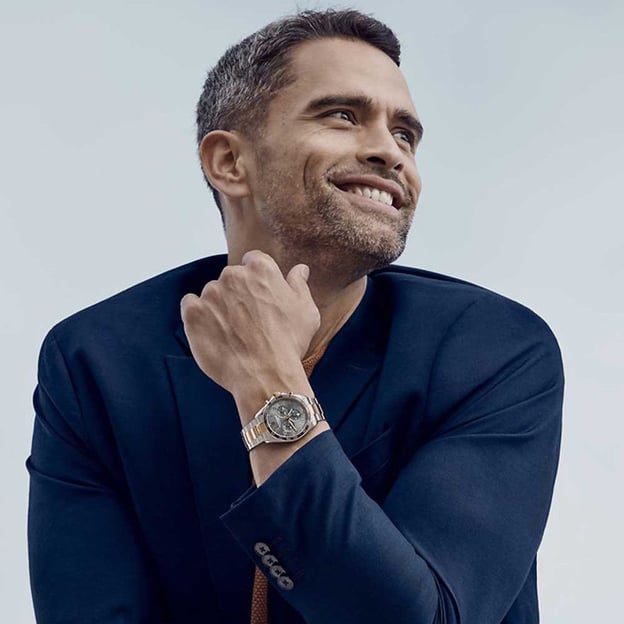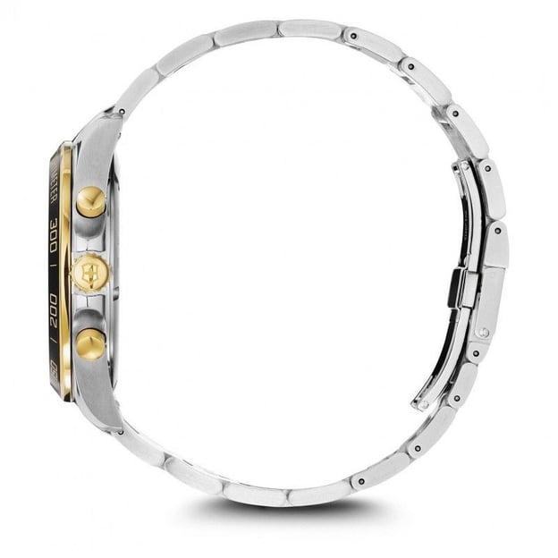 Корпус и браслет выполнены из нержавеющей стали в сочетании сталь + золото; диаметр корпуса — 42 мм. Сапфировое стекло с антибликовым покрытием делает циферблат читаемым, а водозащита 10 ATM (100 м) позволяет не переживать о брызгах и воде в повседневных ситуациях.