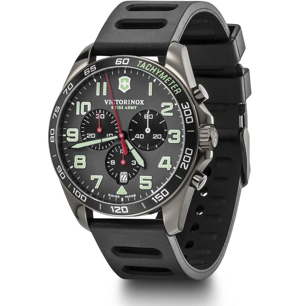 Victorinox Swiss Army Fieldforce 241891 — мужской хронограф с лаконичным серым циферблатом и продуманным дизайном, где каждая деталь работает на удобство и читаемость. На циферблате есть дата, секундомер и тахиметр, а люминесцентные стрелки и метки помогают считывать время при слабом освещении.