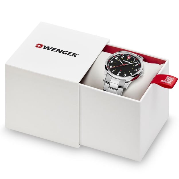 Швейцарский кварцевый механизм отвечает за эффективную работу и точное время в любых условиях. Апертура даты в положении "6 часов", военная шкала времени и красные акценты придают часам динамический спортивный характер. Черный циферблат с выразительными цифрами легко читается. А благодаря стрелкам с покрытием Super-LumiNova позволит считывать время даже ночью. Стальной браслет придает часам более сдержанный и элегантный вид. Оснащен складной застежкой, которая позволяет быстро и надежно закрепить часы на руке.