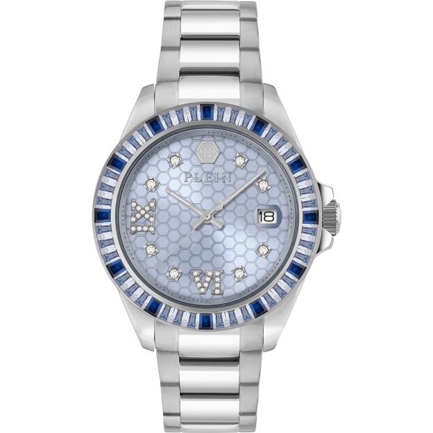 Женские часы Philipp Plein Lady Empire PW2FA0125 — аккуратная модель с круглым стальным корпусом и серебристым браслетом. Голубой циферблат смотрится свежо и легко читается, а аналоговая индикация сохраняет классический стиль.