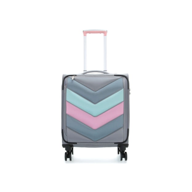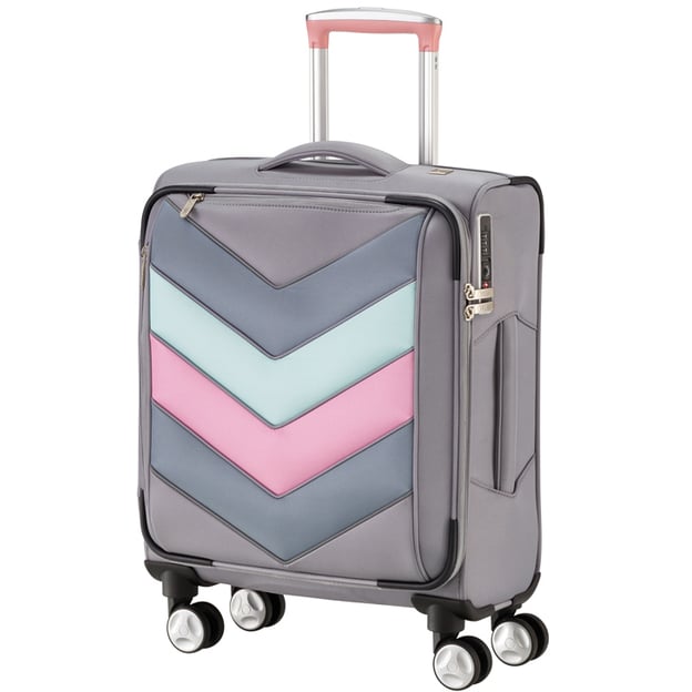 Titan SPOTLIGHT SOFT/Grey Sorbet Маленький (40 x 55 x 21 см / 36 л / светло-серый) - маленький чемодан в нежном дизайне с кодовым TSA замком, который соответствует параметрам ручной клади. Светлый серый цвет разбавленный цветными вставками, которые создают идеальную общую гармонию. Все, что нужно для короткой поездки на 1-3 дня, поместится в этом компактном чемодане. На углах чемодана есть прорезиненные накладки. Надежное закрытие чемодана обеспечивает встроенный кодовый замок с функцией TSA, который позволяет таможенным службам производить осмотр багажа без взлома. 4-колесная система плавно вращается на 360 градусов, обеспечивая легкий ход и устойчиость в вертикальном положении. Удобное управление телескопической ручкой с несколькими точками фиксации.