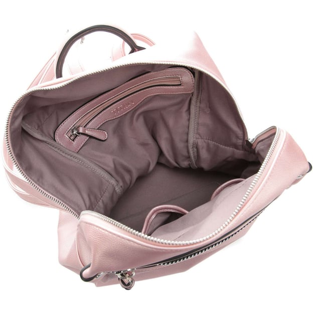 Titan SPOTLIGHT SOFT/Metallic Pink (26x30x15см / 11 л / розовый металлик) - гламурный рюкзак в нежном розовом дизайне, идеально подойдет современным девушкам. Модель создана в рамках сотрудничества с популярным реалити-шоу Next Topmodel в Германии. Легкий и небольшой рюкзак на тонких плечевых ремнях идеально подойдет для городских прогулок. Аксессуар изготовлен из высококачественного полиуретана, что придает ему современный вид с металлическим блеском. Этот материал не только выглядит стильно, но и обеспечивает долговечность и устойчивость к неблагоприятным погодным условиям. Основное отделение просторное и удобное для хранения книг, документов, одежды и других необходимых вещей. Внутри основного отделения расположен один карман на молнии и два кармана открытого типа, которые помогают поддерживать порядок и легко находить нужные предметы. Фронтальный и небольшой задний карманы на молнии удобны для хранения мелких предметов, таких как ключи, телефон или кошелек, обеспечивая быстрый доступ к ним.