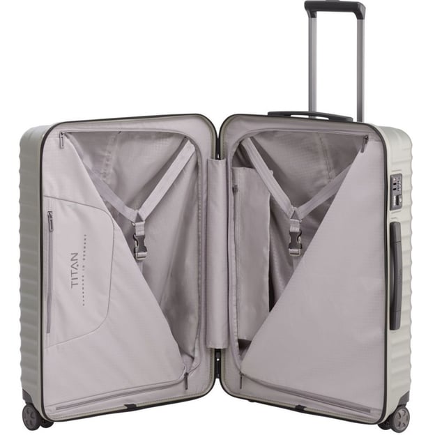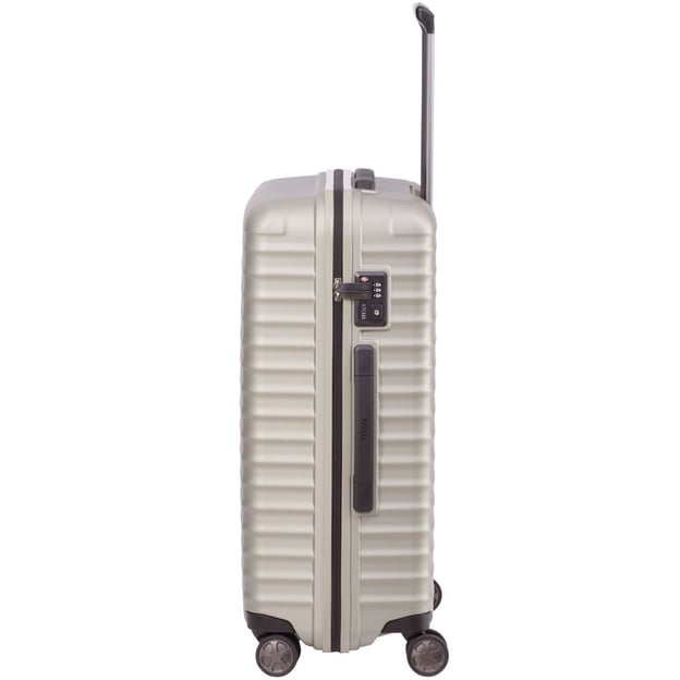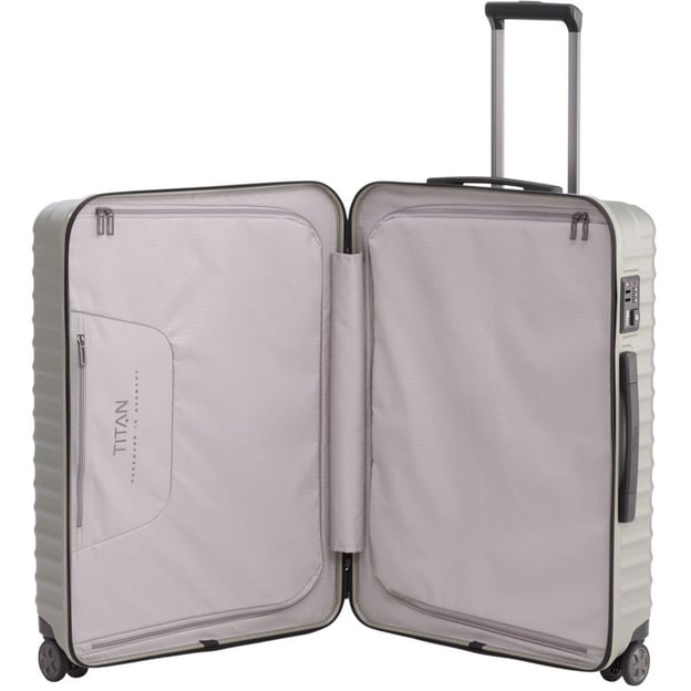 Titan Litron Champagner Средний (49 x 69 x 28 см / 80 л / цвета шампань) - крепкий чемодан среднего размера из чистого поликарбоната от немецкого бренда Titan. Универсальный вариант как для недельных поездок, так и более длительных - зависит от вашей потребности в количестве вещей. Чемодан изготовлен из поликарбоната, который устойчив к царапинам и повреждениям, легкий и прочный. Коллекция LITRON отличается впечатляющим пространством и продуманными деталями. Утопленные в корпус колеса, что одновременно делает конструкцию колес более надежной и минимизирует габариты чемодана. А двойные ролики позаботятся о большей устойчивости и маневренности вне зависимости от веса багажа. Надежное закрытие чемодана обеспечивает встроенный кодовый замок с функцией TSA, позволяющей таможенным службам производить осмотр багажа без взлома.