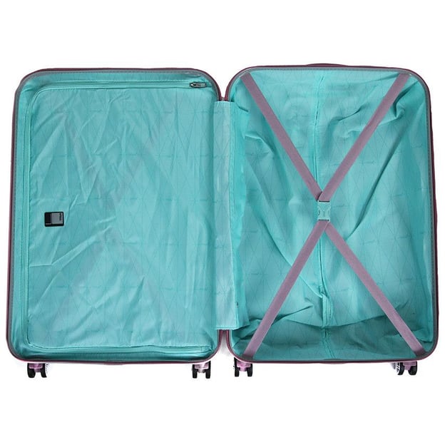 Titan Spotlight Flash Wild Rose Средний (45 x 67 x 27 см / 69 л / розовый) - женский элегантный чемодан среднего размера с кодовым замком TSA для любой поездки. Красивый нежный цвет в глянцевом блеске располагает к легким и непринужденным поездкам. Стандартное внутреннее пространство с качественной текстильной подкладкой имеет все необходимое, чтобы аккуратно упаковать и перевезти предметы гардероба. Оболочка из жесткого ABS корпуса с поликарбонатной пленкой более упругая и хорошо защищена от повреждений. Поверхность с богатым глянцевым блеском дополнена окантовкой из матового алюминия. Замок кодовой блокировки TSA надежно защищает от взлома при транспортировке и прохождении таможенного контроля. Четыре сдвоенных колеса с радиусом вращения на 360 градусов. Бесшумный ход и преодоление всех препятствий гарантированы.