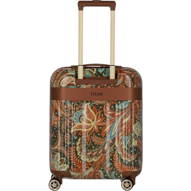 Titan Spotlight Flash Paisley Bronze Средний (45 x 67 x 27 см/69 л/коричневый с узором) - чемодан среднего размера с оригинальным дизайном от немецкого бренда Titan. Неординарная модель покоряет своим внешним видом. Идеально подходит стильным путешественникам для разного рода поездок. Оболочка из жесткого ABS корпуса с поликарбонатной пленкой более упругая и хорошо защищена от повреждений. Поверхность с богатым глянцевым блеском дополнена окантовкой из матового алюминия. Замок кодовой блокировки TSA уже интегрирован в чемодан. Путешествуйте в разные страны и будьте уверены в безопасности своего багажа. Четыре сдвоенных колеса с радиусом вращения на 360 градусов. Бесшумный ход и преодоление всех препятствий гарантированы.