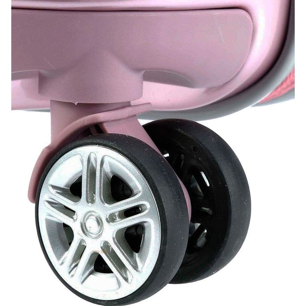 Titan SPOTLIGHT FLASH/Wild Rose Маленький (40 x 55 x 20 см / 37 л/розовый) - гламурный маленький чемодан в нежном розовом дизайне для коротких поездок и командировок. Прекрасное сочетание стиля и функциональности для короткого путешествия. Две камеры для вещей с интерьером для аккуратной упаковки вещей. Внутри камер есть компрессионные ремни и разделитель. Оболочка из жесткого ABS корпуса с поликарбонатной пленкой более упругая и хорошо защищена от повреждений. Поверхность с богатым глянцевым блеском дополнена окантовкой из матового алюминия. Четыре двойных колеса обеспечивают плавность хода, скорость передвижения и максимальную маневренность чемодана.