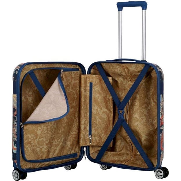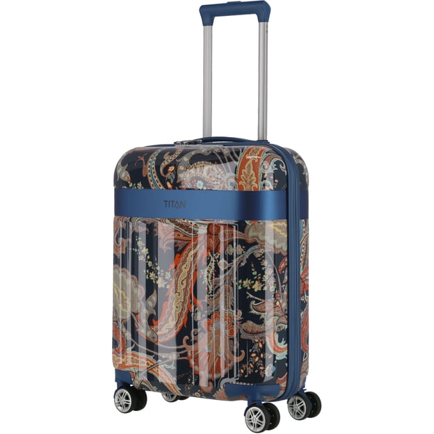 Titan SPOTLIGHT FLASH/Paisley Blue Маленький (40 x 55 x 20 см / 37 л /синий с узором) - эффектный чемодан небольшого размера с кодовым замком с функцией TSA для кратковременных путешествий. С таким багажом вы всегда будете в центре внимания. Параметры чемодана позволяют перевозить его на борту самолета. Продуманное внутреннее пространство позволяет разделить и аккуратно перевезти предметы гардероба. Прочный пластиковый корпус с глянцевой принтованной поверхностью, которая придает чемодану неповторимый вид. Отделка под шлифованный матовый алюминий - еще одна отличительная черта дорожных моделей из коллекции Spotlight Flash. Четыре двойных колеса обеспечивают плавность хода, скорость передвижения и максимальную маневренность чемодана.