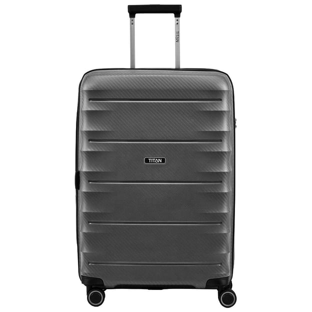 Titan HIGHLIGHT/Anthracite Средний (46 x 67 x 28 см / 73 л / серый) - жесткий чемодан среднего размера с функцией расширения объема. Параметры чемодана для поездок на 1-2 недели - все зависит от ваших привычек собирать вещи. Урбанистический дизайн делает этот чемодан очень динамичным и актуальным для любой поездки. Корпус изготовлен из материала с отличным сочетанием гибкости и жесткости, что позволяет перевозить чемодан полупустым. Функция увеличения объема на 6 литров обеспечивает дополнительное место для ваших вещей. Надежное закрытие чемодана обеспечивает встроенный кодовый замок с функцией TSA, что позволяет таможенным службам производить досмотр багажа без взлома. Для максимально комфортного передвижения чемодан оснащен 4 двойными колесами с бесшумным ходом.