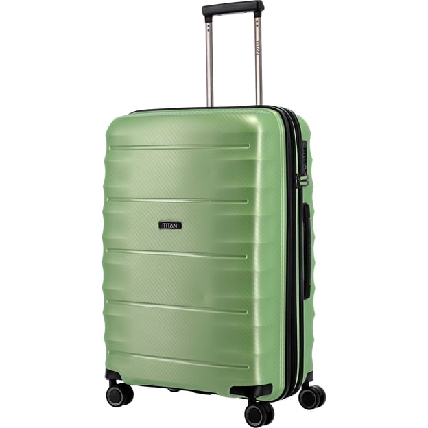 Titan HIGHLIGHT/Green Metallic Средний(46 x 67 x 28 см / 73 л / светло-зеленый) - яркий чемодан среднего размера со вставкой расширения и замком TSA. Универсальный вариант как для недельных поездок, так и более длительных - зависит от вашей потребности в количестве вещей. Стильная и легкая дорожная модель станет верным спутником во всех приключениях. Корпус изготовлен из материала с превосходным сочетанием гибкости и жесткости, что позволяет перевозить чемодан полупустым. Функция расширения объема на 6 л предоставляет дополнительное место для ваших вещей. Кодовый замок с функцией TSA позаботится о дополнительной безопасности вашего багажа. Абсолютно послушный и почти бесшумный ход обеспечивают четыре колеса с двойными роликами.