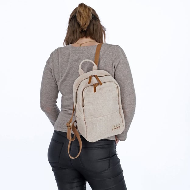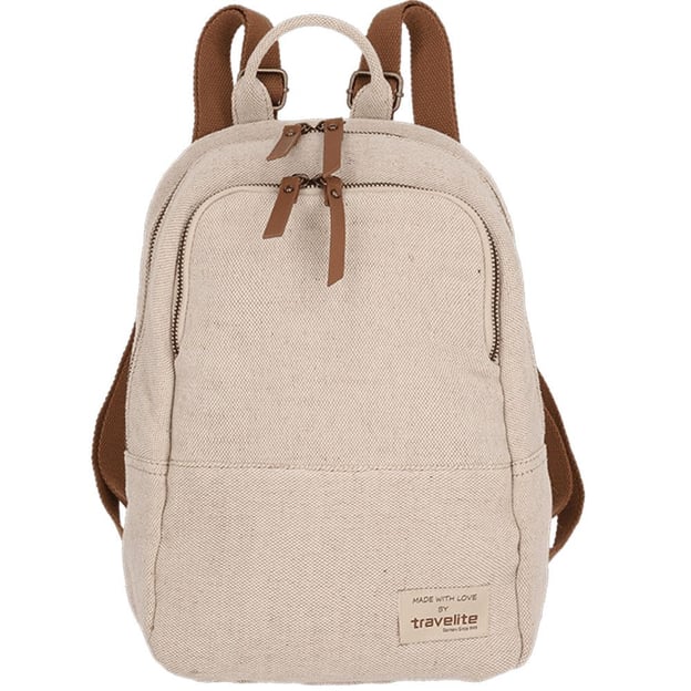 Travelite Hempline Beige (22x30x11см / 5,9 л / бежевый) - женский стильный рюкзак из органических материалов для повседневных прогулок. Стильный аксессуар для тех, кто выбирает экологичный образ жизни. Рюкзак сделан из комбинированного органического текстиля. Волокна конопли делают ее чрезвычайно износостойкими, легкими и воздухопроницаемыми. Содержимое хлопка придает текстилю мягкости. Просторное основное отделение позволяет легко вместить все необходимые вещи. Оно идеально подходит для книг, одежды, гаджетов и других предметов. Внутренние карманы с кольцом для крепления позволяют аккуратно разместить ключи, телефон, кошелек или зарядные устройства. На передней панели расположен карман на молнии для быстрого доступа к вещам первой необходимости. На спинке рюкзака также предусмотрен дополнительный карман на молнии для удобного хранения ценных вещей.