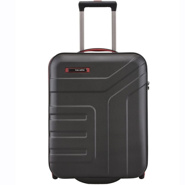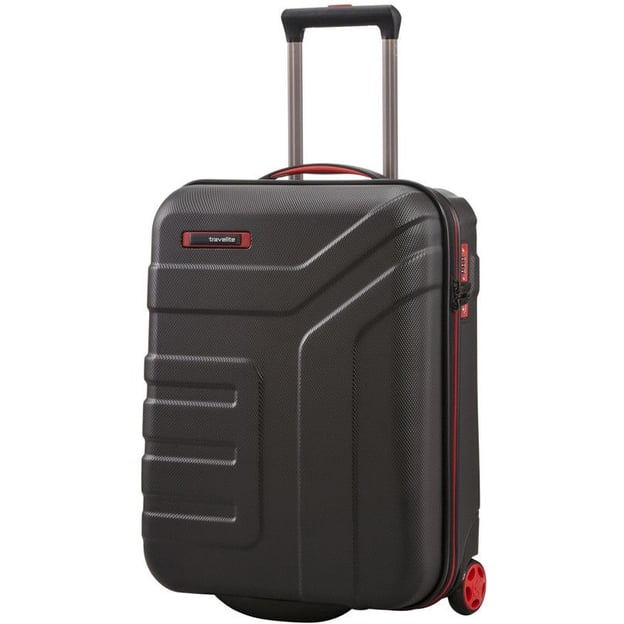 Travelite VECTOR/Black S Маленький (черный; 44 литра) - маленький двухколесный чемодан для кратковременных путешествий и командировок. Современная структурированная поверхность черного цвета с контрастными красными акцентами. Чемодан из ABS пластика устойчив к износу, возникновению потертостей, царапин и выглядит презентабельно. Двухкамерное отделение с тканевой подкладкой по всей площади и эластичными упаковочными ремнями для фиксации вещей. Разделитель с тремя карманами для белья и разных мелочей. Встроенный кодовый замок TSA - лучшая защита вашего багажа. Чтобы отталкивать пыль, воду и грязь прорезиненная оболочка вдоль молнии. Мягкая резиновая ручка для переноски в вертикальном положении чемодана.