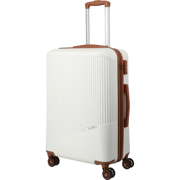 Travelite Bali White Средний (белый; 65 литров) - пластиковый чемодан на 4 колесах в стильном белом дизайне с коричневыми деталями, который подойдет для одно- или двухнедельной поездки. Чемоданы из коллекции Bali имеют высокую привлекательность благодаря интересному дизайну и великолепной цветовой палитре. Модель имеет просторную вещевую камеру с карманом на молнии и эластичными ремнями, разделенную на две равные части. Встроенный замок TSA для надежной защиты багажа.