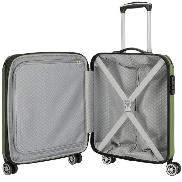 Чемодан Travelite CITY/Green S Маленький (40x55x20\40 литров\зеленый) - маленький и легкий пластиковый чемодан на 4-х колесах с функцией расширения. Компактный и стильный вариант ручной клади для перелетов и не долгих путешествий. Содержимое багажа под надежной защитой кодового замка. Дизайн чемодана ориентирован на безопасность: продуманная защита углов и стойкая к царапинам поверхность из ABS-пластика защищают ее от повреждений.