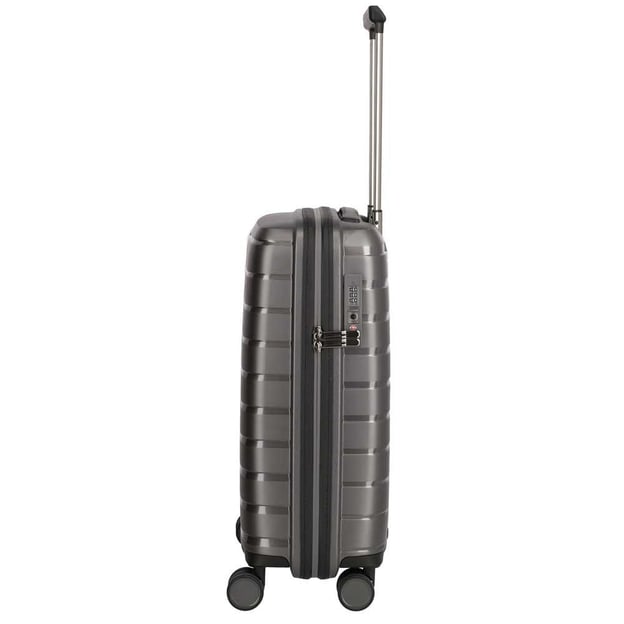 Travelite AIR BASE/Anthracite S Маленький (39x55x20 см / 37 л / полипропилен / темно-серый) - отличный, легкий и функциональный чемодан для коротких путешествий. Внутренний интерьер выполнен в сдержанном классическом стиле. Чемодан Air Base разделен на две камеры, в них есть разделители, карманы на молниях и компрессионные ремни. Корпус изготовлен из надежного и прочного материала - полипропилена, отлично выдерживает различные погодные условия, нагрузки и удары. В чемодан интегрированный замок TSA, он предназначен для дополнительной безопасности и беспроблемных таможенных осмотров. Четыре колеса с двойными дисками обеспечат маневровый и плавный ход по разным поверхностям.