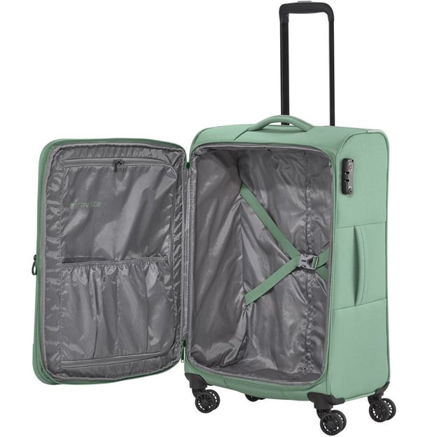 Travelite CROATIA TL080348 (полиэстер / Mint / 43x67x27-31 см / 61-66 л) - средний текстильный чемодан с замком TSA и функцией расширения. Универсальная вместимость на все случаи жизни, а благодаря дополнительной возможности увеличить размер, вы можете смело собрать вещи в недельную поездку. Переднее отделение добавит комфорта и обеспечит быстрый доступ к самым необходимым в дороге вещам. Коллекция также порадует разнообразием цветных дизайнов, что облегчит поиск вашего чемодана на багажной ленте.