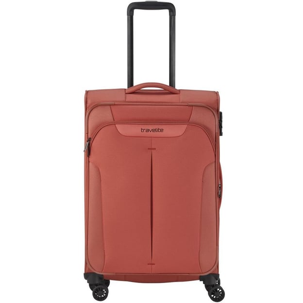Travelite CROATIA TL080348 (полиэстер / Coral / 43x67x27-31 см / 61-66 л) - средний чемодан кораллового цвета с замком TSA и функцией расширения. Универсальная вместимость на все случаи жизни, а благодаря дополнительной возможности увеличить размер, вы можете смело собрать вещи в недельную поездку. Переднее отделение добавит комфорта и обеспечит быстрый доступ к самым необходимым в дороге вещам. Коллекция также порадует разнообразием цветных дизайнов, что облегчит поиск вашего чемодана на багажной ленте.