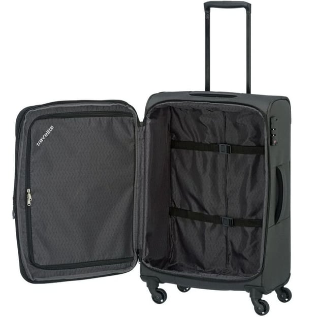 Текстильный чемодан Travelite DERBY TL087548 (Полиэстер 600D / темно-серый / Средний размер+ - 66х42х27-31 см; 69-79 л).