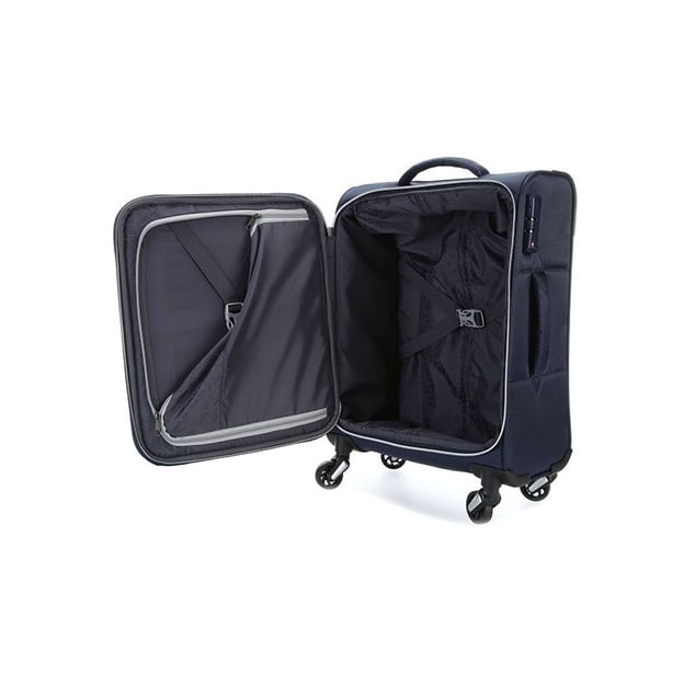 Travelite KITE TL089947 (полиэстер / темно-синий / Маленький размер 54х37х20 см; 36 л) - легкий и компактный текстильный чемодан со встроенным замком TSA. Стильный и удобный дизайн для поездки на 2-3 дня. Безупречную маневренность на вокзалах и в аэропортах вам гарантируют 4 колеса, вращающиеся на 360 градусов. Благодаря дополнительным внешним карманам ваши посадочные билеты, салфетки, дорожная подушка или любимая книга всегда в быстром доступе.