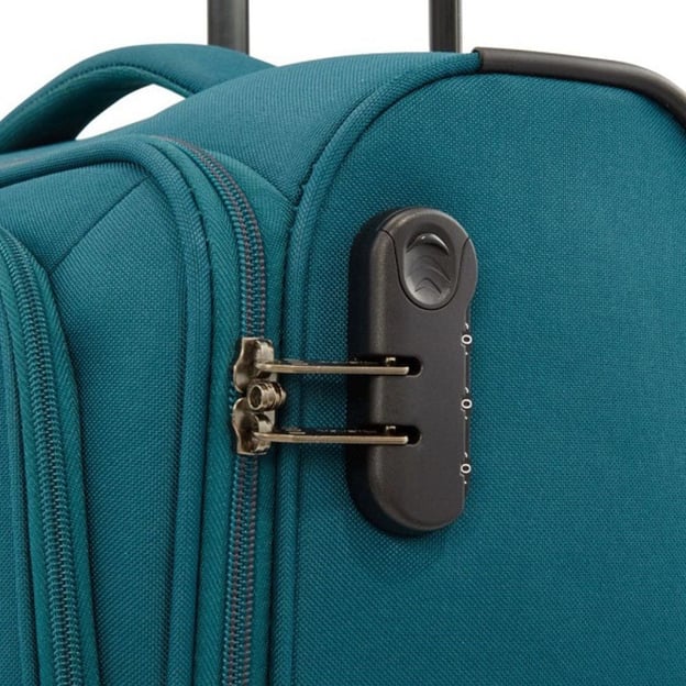 - Сверху чемодан дополнен ручкой для поднятия или укладывания чемодана на багажную полку.