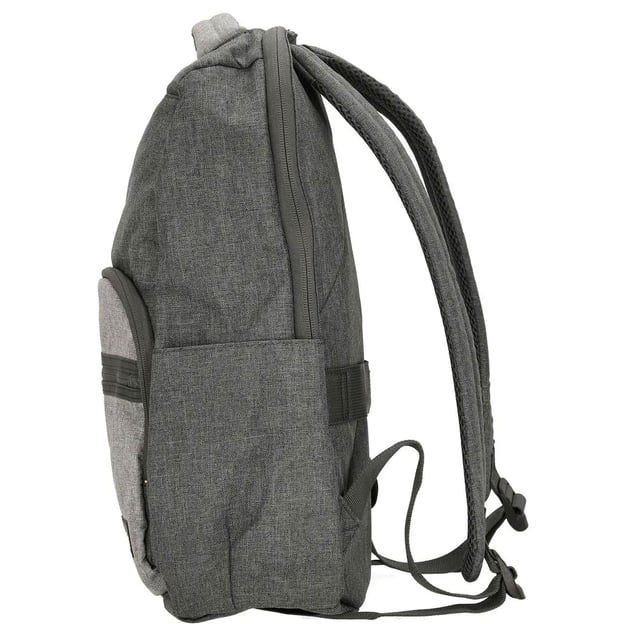 С фронтальной части расположены 2 кармана на молнии с желтой подкладкой, карабином для ключей и органайзером. В главном отделении есть мягкий карман для ноутбука до 15,6 дюймов и дополнительно сетчатый карман на молнии. Для бутылки воды или зонтика предназначены боковые карманы открытого типа.