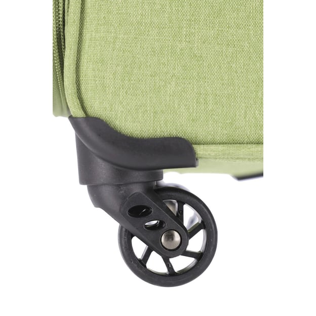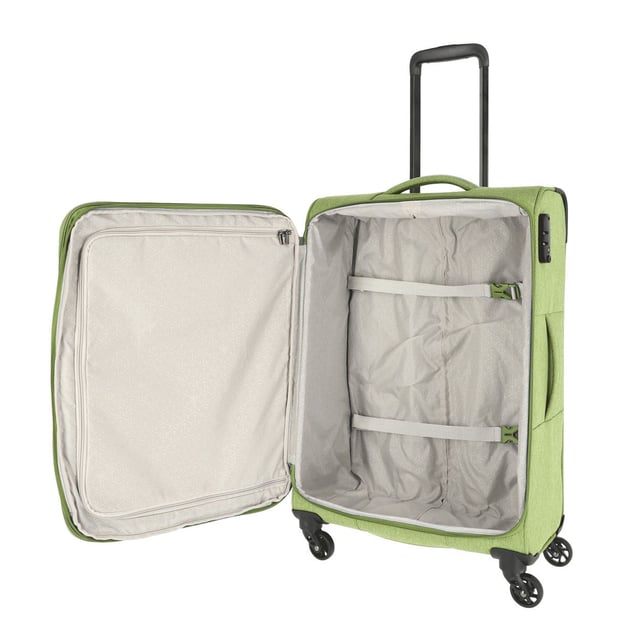 Travelite BOJA TL091548 (полиэстер / зеленый / Средний размер+ 67х42х26 см; 56 л) - текстильный 4-колесный чемодан со встроенным замком TSA и функцией расширения. Упаковочное место с возможностью увеличить простанство порадует, если вы захотите захватить из путешествия парочку милых сувениров родным и близким. Легкую маневренность на вокзалах и в аэропортах вам гарантируют 4 колеса, вращающиеся на 360 градусов. А чтобы ваши посадочные билеты, дорожная подушка или любимая книга всегда в быстром доступе, модель оснащена внешними карманами.
