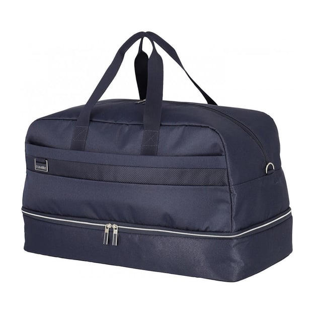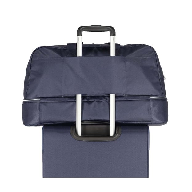 Travelite Miigo Navy (синяя, 58 литров) - практичная дорожная сумка для разных поездок. Наружный материал и подложка изготовлены из переработанного полиэстера (R-PET). Волокна R-PET в этих материалах из сертифицированных переработанных пластиковых отходов, затем используются для создания текстиля. Сумка имеет отдельное бельевое отделение, которое позволит вам упорядочить свои вещи и отделить чистую и грязную одежду. На лицевой стороне есть дополнительный карман на молнии, куда можно положить полезные аксессуары. Сумку можно закрепить на ручке чемодана. Крепкие удлиненные ручки позволяют переносить сумку в руках, а съемный ремень – на плечах.