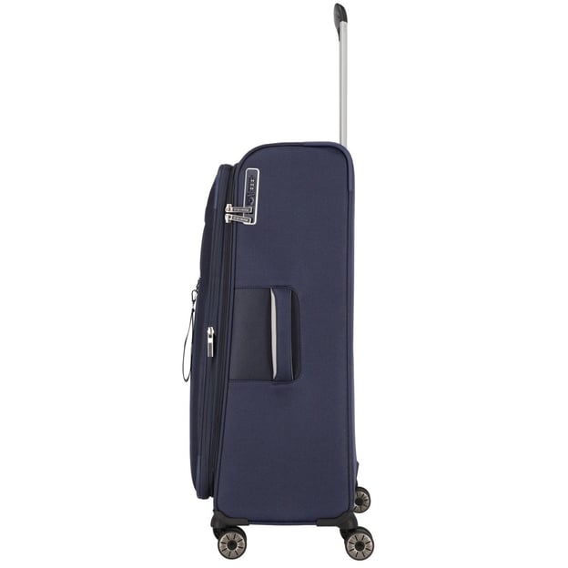 Travelite MIIGO TL092749 (переработанный полиэстер / темно-синий / Большой размер+ 77х47х30-34; 90-96 л) - современный немецкий чемодан со встроенным замком TSA и вставкой для увеличения размера. Вместительный багаж, чтобы собрать вещи для длительной поездки. Четыре двойных колеса имеют чудесный плавный ход и позволяют вам элегантно перемещаться. Большие карманы на молнии позволяют легко хранить множество вещей, поэтому самые важные предметы всегда под рукой и не теряются в глубинах чемодана.
