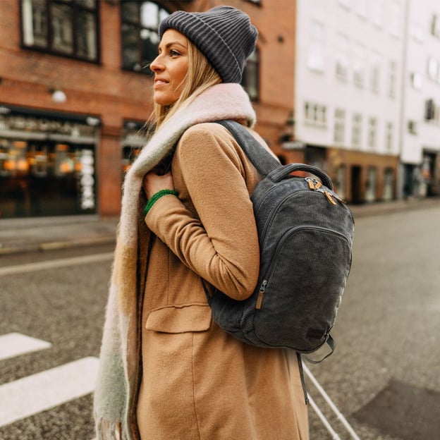 Travelite Cord Anthracite (26x40x14 см / 13 л / темно-серый) - городской вельветовый рюкзак с безопасным карманом для ноутбука до 13 дюймов. Стильный рюкзак в изысканном вельветовом исполнении придает вашему образу неповторимый ретро-шарм. Этот аксессуар из линейки Cord - воплощение элегантности для тех, кто ценит комфорт и активный образ жизни. Он идеально подходит для прогулок по городу, деловых встреч или путешествий. Регулируемые плечевые ремни и мягкая спинка обеспечат максимальный комфорт при ношении, а широкая манжета позволит легко закрепить рюкзак на ручке чемодана, если вы путешествуете с несколькими единицами багажа. Качественные молнии и текстильная подкладка гарантируют долговечность в использовании. Продуманный дизайн с двумя отделениями на молнии. В основном отделении есть безопасный карман для ноутбука до 13 дюймов. Большой фронтальный карман-органайзер поможет вам легко организовать мелкие вещи, а два боковых кармана предоставят место для бутылки с водой, термоса или зонта.