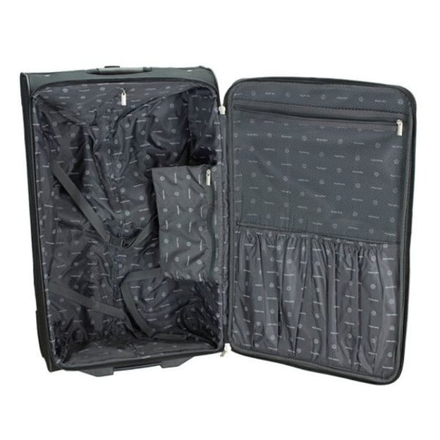 - На крышке чемодана - карман-сетка на молнии + 2 открытых кармана.