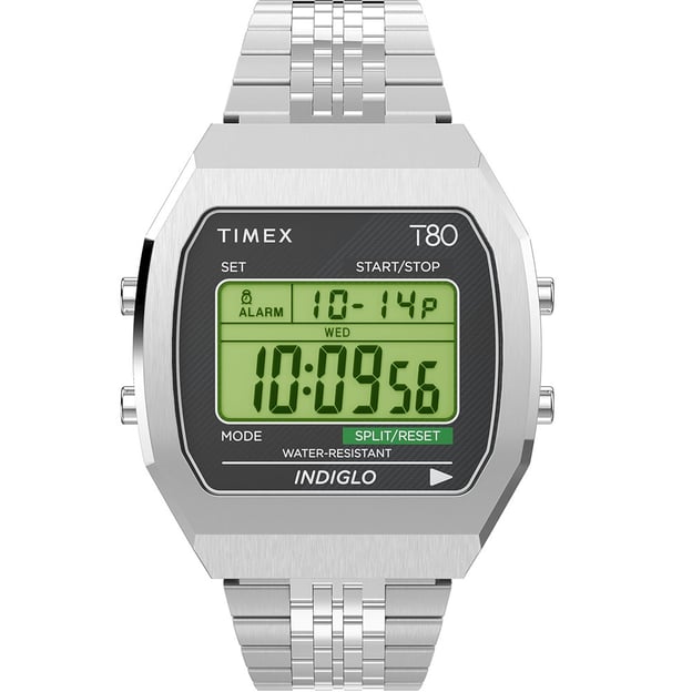 Timex T80 Tx2v74200 - мультифункциональные электронные часы на стальном браслете серебристого цвета. T80 отдают дань уважения первым цифровым часам Timex, одним из первых, появившихся на рынке. Многозадачная кварцевая модель с датой, секундомером, будильником и подсветкой INDIGLO. Классический стальной браслет с подвижным замком для быстрой регулировки обхвата.