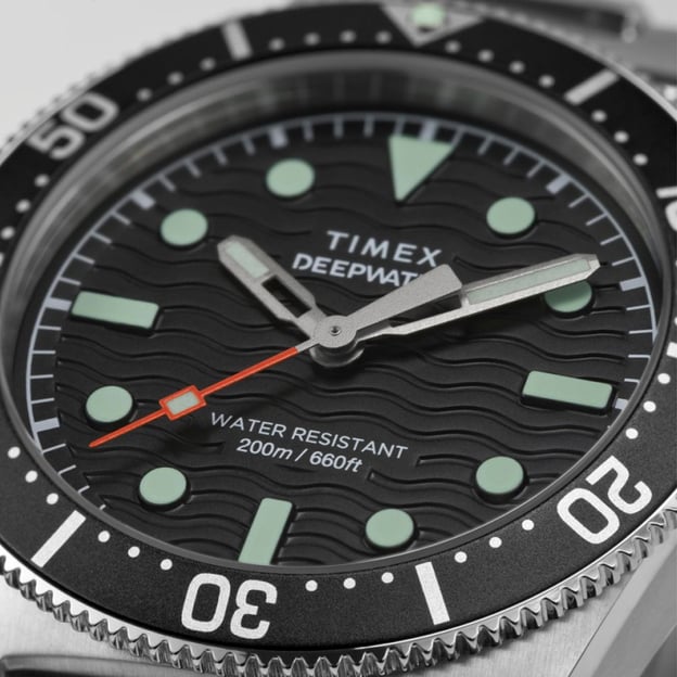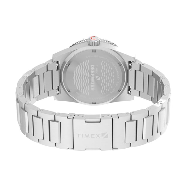 Часы Timex DEEP WATER Reef 200 Tx2w95200 созданы для тех, кто ищет надежность во время погружений и стиль в повседневной жизни. Корпус из нержавеющей стали отличается ударо- и коррозионной стойкостью, а завинчивающаяся заводная головка и задняя крышка обеспечивают герметичность до 200 метров. Односторонний черный алюминиевый безель помогает отслеживать время погружения, а сапфировое стекло с антибликовым покрытием гарантирует прозрачность и защиту от царапин. Люминесцентное покрытие Super-LumiNova® на стрелках и метках позволяет легко считывать время даже в темноте, а волнообразный узор на циферблате придает глубину и характерное морское настроение. Стальной браслет с раскладной застежкой делает модель долговечной и удобной как в воде, так и на суше.