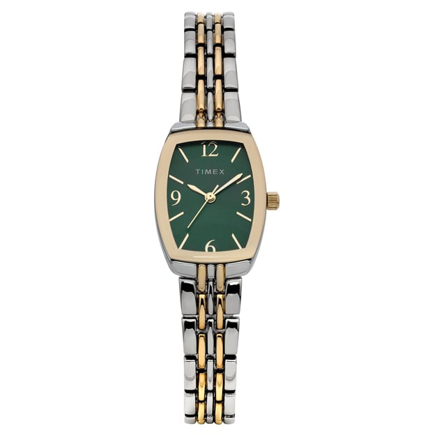 Женские часы Timex Charlotte Tx2y22300 сочетают элегантность и современный дизайн. Миниатюрный корпус шириной всего 21 мм имеет форму тонно и украшен особым стеклом, что полностью накрывает верхнюю поверхность, создавая эффект легкого «парения» над корпусом. Полированная отделка корпуса и браслета гармонично подчеркивает зеленый циферблат с узором SunRay, который играет светом при каждом движении.