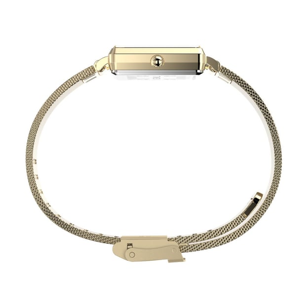 Часы Timex TRANSCEND Rectangle Tx2y26100 – это современная интерпретация классики, которая сочетает минимализм и элегантность. Прямоугольный корпус шириной 22 мм со скошенными линиями и зеркально-полированной отделкой создает изящный силуэт. Легкий браслет миланского плетения из нержавеющей стали в золотистом оттенке придает часам изысканность, а регулируемая застежка обеспечивает комфортную посадку. Серебристый циферблат с узором «солнечные лучи» и тонкими альфа-стрелками формирует стильный и лаконичный образ, который легко совмещать с любым гардеробом.
