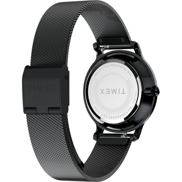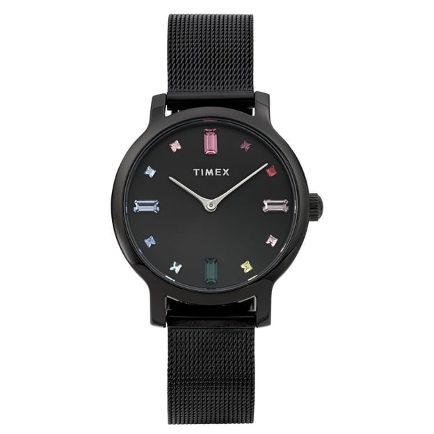 Стильные женские часы Timex TRANSCEND сочетает в себе современный дизайн и изысканные детали. Круглый корпус диаметром 31 мм в глубоком черном цвете выглядит эффектно и элегантно. Его украшает циферблат с разноцветными камешками Swarovski, что выполняют роль часовых меток, придавая яркий акцент. Легкий браслет миланского плетения из стали обеспечивает комфортное ношение, а складная застежка гарантирует надежную фиксацию. Благодаря минималистичной аналоговой индикации с двумя стрелками часы выглядят лаконично и универсально — они одинаково уместны в повседневном и праздничном образе.