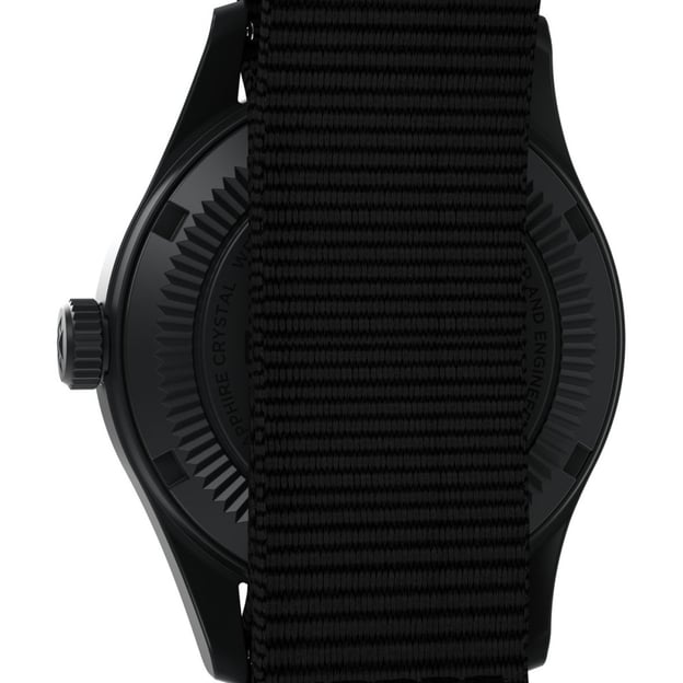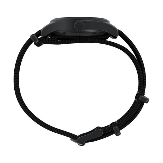 - Ремешок: черный текстильный ремешок 20 мм из переработанного пластика, застежка – стальная пряжка. Подходит на обхват запястья 150-205 мм.