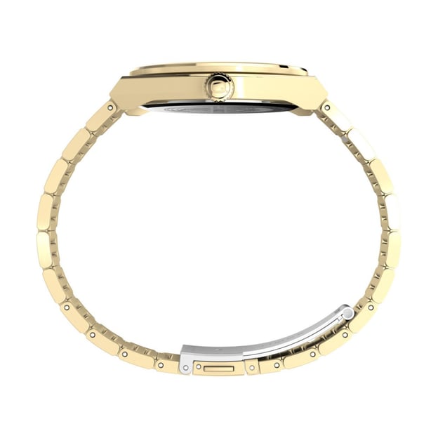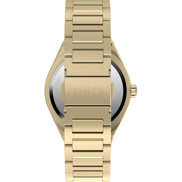 Часы Timex Q TIMEX Continental сочетают ретро-эстетику 70-х с современной функциональностью, создавая стильный аксессуар для мужчин, которые ценят классику с ноткой гламурной роскоши. Модель отличается новым обтекаемым корпусом из матовой стали с полированными краями, что придает изысканности и современности. Золотистый корпус размером 39 × 9 мм гармонично сочетается со стальным браслетом в том же оттенке, который имеет интегрированную конструкцию и сужается к застежке. Зеленый циферблат с радиальной текстурой создает эффект глубины, а люминесцентные стрелки обеспечивают удобство в темноте. Двойная апертура показывает дату и день недели, прибавляя практичности.