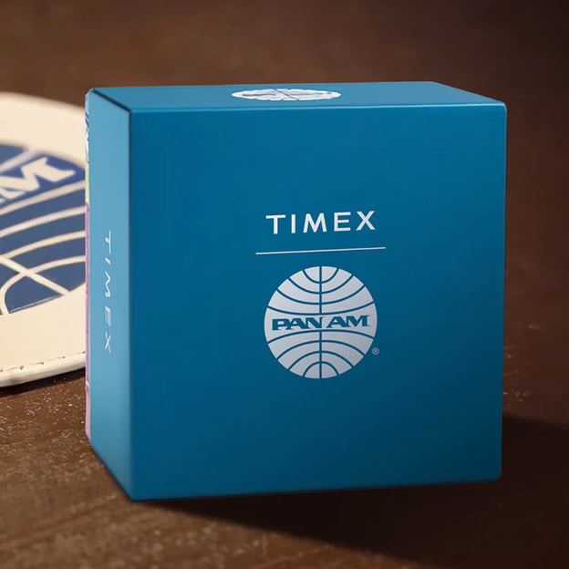 Первая автоматическая модель, созданная в сотрудничестве Timex и легендарной авиакомпании Pan American World Airways, стала настоящим воплощением классических пилотских часов. Она пополнила коллекцию Waterbury и отличается сдержанным милитари-дизайном с современным акцентом. Темно-синий циферблат с солнечным эффектом украшен апертурой даты и символическим мотивом самолета, что подчеркивает авиационное наследие Pan Am. Этот же самолет изображен на ремешке из натуральной кожи, изготовленной по экологическим стандартам Leather Working Group (LWG). Контрастная белая строчка и культовая синяя подкладка придают стиля и подлинности. Благодаря быстросъемным штифтам ремешок можно легко заменить без инструментов.