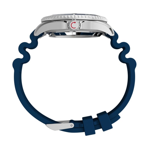 Мужские автоматические дайверские часы Timex DEEP WATER Meridian 200 Automatic с синим каучуковым ремешком. Модель из коллекции Deepwater предназначена для тех, кто стремится исследовать глубины океана. Она совмещает прочность профессионального инструмента с элегантностью современного дизайна. Массивный корпус из нержавеющей стали диаметром 44 мм выдерживает экстремальные нагрузки, а автоматический механизм с 21 камнем работает без батарейки, используя движения вашего запястья как источник энергии. Прозрачная задняя крышка позволяет наблюдать за работой механизма, а увеличенное окошко даты с линзой обеспечивает удобство считывания. Синий керамический безель вращается только в одном направлении, что гарантирует безопасность во время погружений. Люминесцентное покрытие Super-LumiNova® на стрелках, индексах и метке безеля обеспечивает яркое свечение в темноте. Синий ремешок из каучука HNBR устойчив к ультрафиолету и износу, имеет перфорированную структуру для лучшей вентиляции и комфорта.