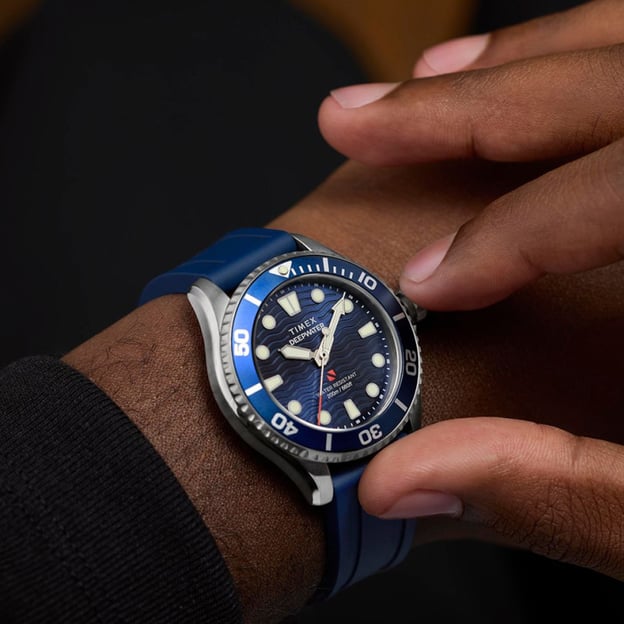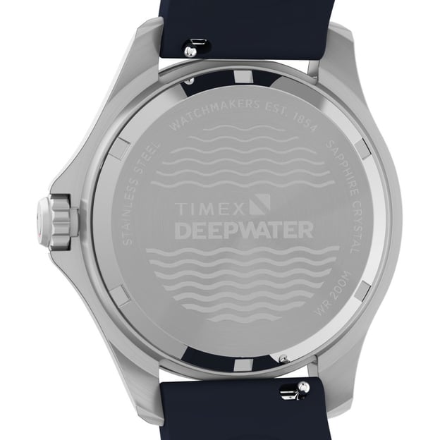 Кварцевые дайверские часы Timex DEEP WATER Meridian с каучуковым ремешком. Модель из коллекции Deepwater создана для тех, кто ценит надежность во время погружений и комфорт в повседневном ношении. Благодаря корпусу уменьшенного размера 38 мм эти часы одинаково удобны как для мужчин, так и для женщин. Закручивающаяся головка и задняя крышка обеспечивают герметичность корпуса, позволяя выдерживать давление воды на глубине до 200 метров. Синий циферблат с люминесцентным покрытием Super-LumiNova® гарантирует четкую видимость в темноте, а однонаправленный алюминиевый безель добавляет функциональность для подводных исследований. Сапфировое стекло с антибликовым покрытием защищает циферблат от царапин и обеспечивает максимальную прозрачность. Ремешок из каучука HNBR устойчив к ультрафиолетовому излучению и износу, а быстросъемные штифты позволяют легко изменять его без инструментов.