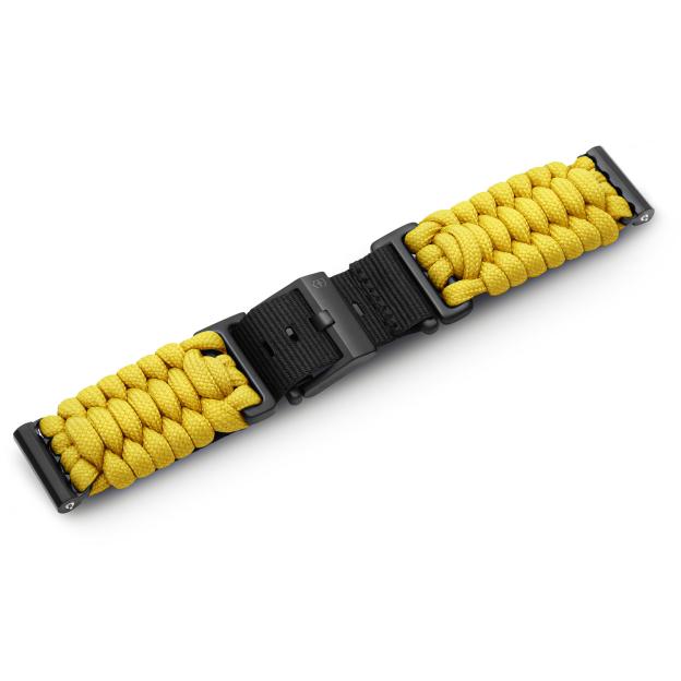 Victorinox Swiss Army V 60050 комплектуется ремешком из паракорда — практичный вариант с выразительной фактурой и характерным видом. Яркий желтый цвет хорошо заметен и делает модель более живой, добавляя акцент без лишней вычурности.