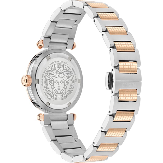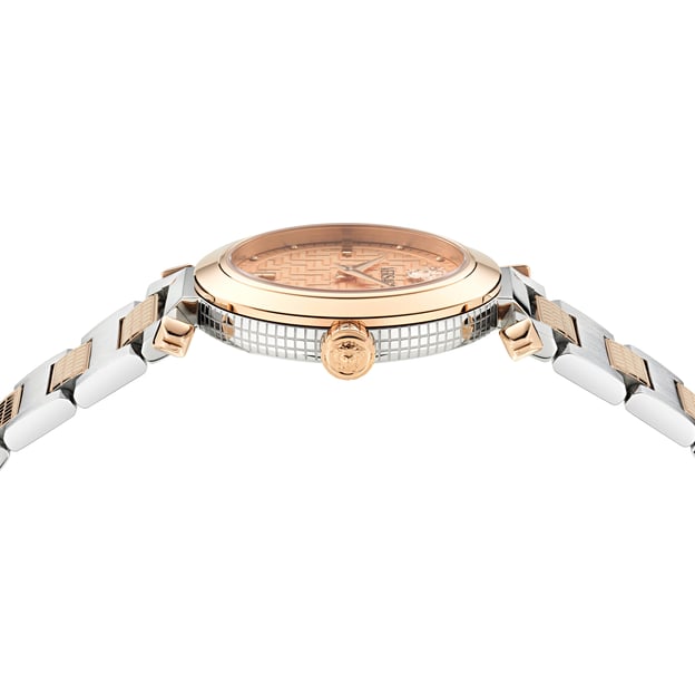 Женские часы Versace VERSACE GREEK Vre5b00425 с циферблатом в оттенке розового золота. Двухцветный стальной дизайн с акцентами под розовое золото создает гармоничный баланс между сдержанностью и изысканностью. Легендарный корпус в стиле Versace Greek отсылает к культовым аксессуарам бренда, а циферблат с эффектом мателаси придает глубину и неповторимый шарм. Каждая деталь этих часов – от браслета до заводной головки – продумана с ювелирной точностью, превращая их в символ женской красоты и изящества.