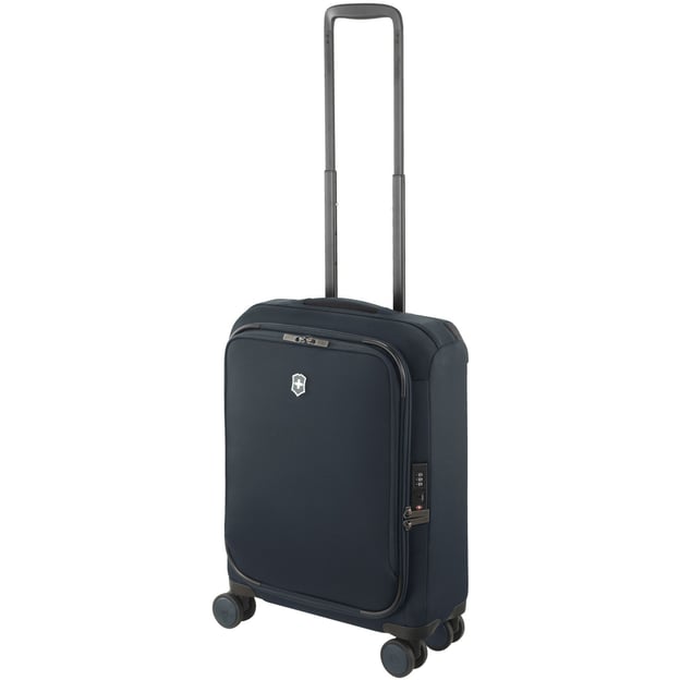 Victorinox Travel CONNEX SS/Deep Lake (40 x 55 x 20 см /28 л / темно-синий) - компактный чемодан от легендарного бренда Victorinox Travel. Создана для краткосрочных путешествий и командировок. Быстрый доступ к переднему отделению на молнии. В пути в нём удобно держать ноутбук, документы и вещи первой необходимости. Мягкий корпус из баллистического нейлона. Отталкивает влагу и не привередлив в уходе. Углы для большей защиты от повреждений усилены пластиковыми накладками. На тыльной части расположена выдвижная ID-бирка с ручкой и инструментом для замены SIM-карты, а также встроенный USB-порт для подзарядки гаджетов в пути. Устойчива к проколам и порезам японская багажная молния YKK и встроенный замок TSA обеспечивают безопасность в пути и таможенном контроле. Маневренность и устойчивость чемодана обеспечит 4-колесная система со сдвоенными роликами от Hinomoto.