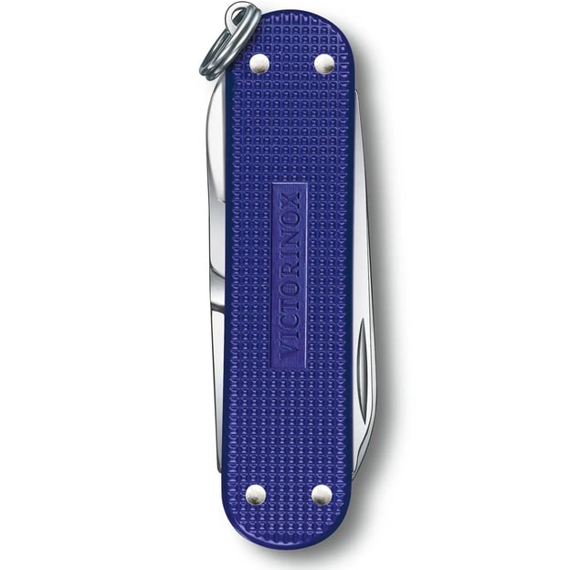 Victorinox CLASSIC SD Alox Colors 0.6221.222G - складной нож-брелок из коллекции Classic Colors 2021 года представлен в 30 разных цветах. Стильный дизайн накладок в синем цвете Night Dive выполнены из рифленого анодированного алюминия и фирменным логотипом, которые надежно защищают от коррозии и механических повреждений. Благодаря этой обработке, рукоять становится более устойчива к воздействию воды и деформации. Рифленая поверхность обеспечивает противоскользящий эффект, что делает швейцарский нож удобным и безопасным в использовании.