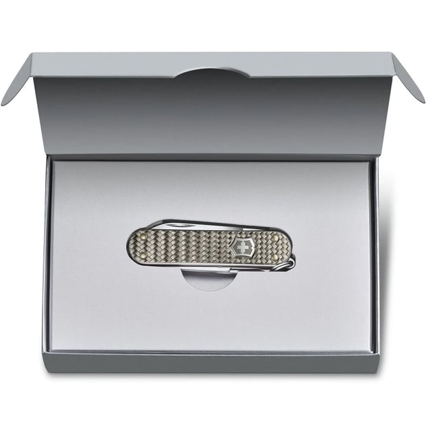 Victorinox CLASSIC SD Precious Alox 0.6221.4031G - это стильный и элегантный швейцарский нож, созданный для тех, кто ценит функциональность и изысканный дизайн. Его корпус-рукоять серого цвета выполнена из высококачественного алюминия Alox с прочным анодированным покрытием, придающим надежность и долговечность. Уникальная фактура рифленого корпуса напоминающая вязаный узор, обеспечивает уверенный захват при использовании.