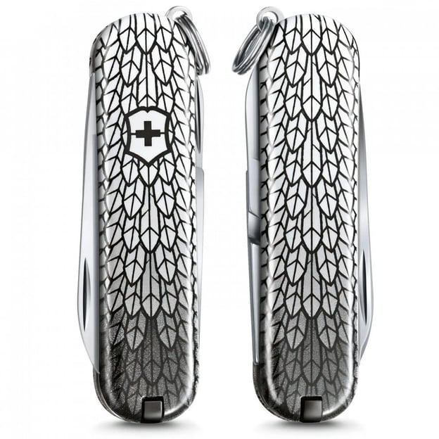 Victorinox CLASSIC Limited Edition 0.6223.L2102 - маленький карманный нож из лимитированной коллекции 2021 года. Стильные глянцевые накладки в дизайне Eagle Flight украшены орлиными перьями с фирменным логотипом. Легкий вес и компактный размер обеспечивают удобство и мобильность в использовании. Все инструменты ножа Victorinox выделяются своей высокой надежностью благодаря качественным материалам и тщательному производственному процессу. Они изготовлены из прочной нержавеющей стали, которая обеспечивает долговечность и стойкость к коррозии. Нож-брелок оснащен разнообразными инструментами, которые универсальны и полезны в различных ситуациях. В набор входят: