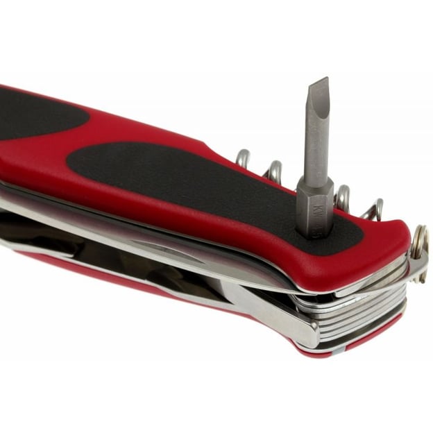 Victorinox RANGER GRIP 174 Handyman 0.9728.WC - складной швейцарский нож с красно-черными антискользящими накладками, которые обеспечивают надежный захват и комфорт во время работы. Этот нож обладает широким набором инструментов, включая основное лезвие, открывалку для бутылок и консервных банок, отвертки, пинцет и другое. Такой обширный набор инструментов позволяет справляться с различными задачами от сборки мебели, так и до ремонта велосипедов или бытовой техники. В набор входят: