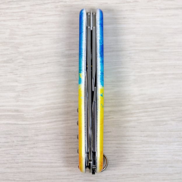 Victorinox SPARTAN UKRAINE 1.3603.7.T3100pw - складной швейцарский нож, сочетает функциональность и символику национальных цветов Украины. Рукоятки украшены ярким желто-синим узором, который отсылает к украинскому флагу и передает дух гордости и патриотизма. Этот нож станет не только практичным помощником, но и значимым аксессуаром, который подчеркнет вашу индивидуальность. Компактные размеры (длина 91 мм) позволяют легко носить его с собой в кармане или рюкзаке. Эта модель станет отличным помощником на природе, в путешествиях или в быту. Благодаря универсальности инструментов и надежности материалов, Victorinox SPARTAN UKRAINE прослужит долгие годы. Модель 1.3603.7.T3100pw включает: