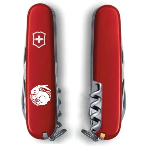 Victorinox SPARTAN ZODIAC 1.3603_Z2160u - швейцарский нож из праздничной коллекции 2023, посвященной году Кролика, поражает воображение своим захватывающим дизайном. Качественная ультрафиолетовая печать на красных глянцевых накладках с изображением Счастливого кролика в белом цвете, устойчива к внешним воздействиям и долговечна. Эта модель идеально подойдет в качестве презента к Новому году, для коллекционеров, близких и друзей.