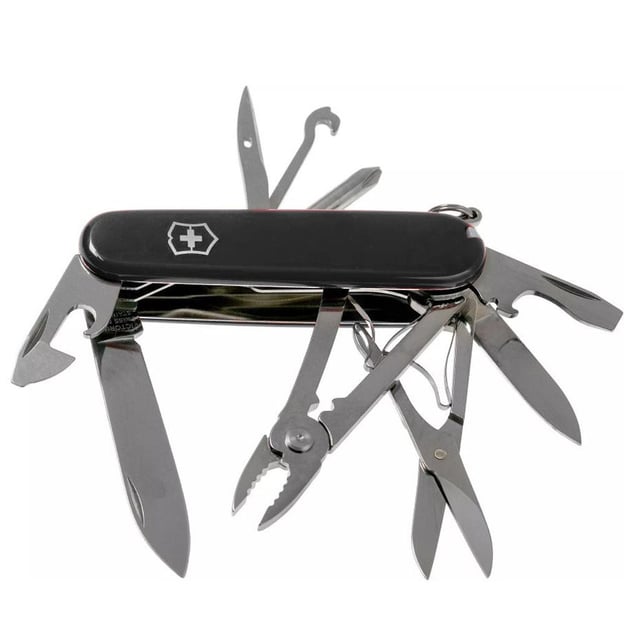 Victorinox DELUXE TINKER 1.4723.3 - складной нож 91 мм с черными накладками. Этот помощник создан для тех, кто всегда стремится к совершенству, полон уверенности в себе и готов к различным вызовам. Стильный и надежный инструмент станет незаменимым компаньоном во всех аспектах жизни, будь то походы, кемпинг, рыбалка или ежедневные задачи. Два лезвия гарантируют необходимую остроту, а разнообразные дополнительные инструменты позволяют выполнять широкий спектр функций, включая открывание бутылок, выкручивание винтов и многое другое. Модель оснащена 4 шарами и удачно подобранным набором из 17 функций: